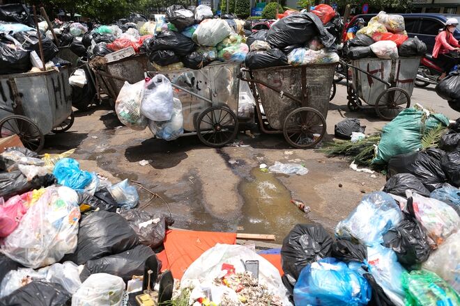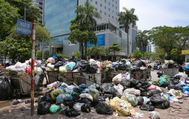 Hà Nội: Rác thải bất ngờ ùn ứ ở nội đô, người dân đi qua phải bịt mũi vì khó thở