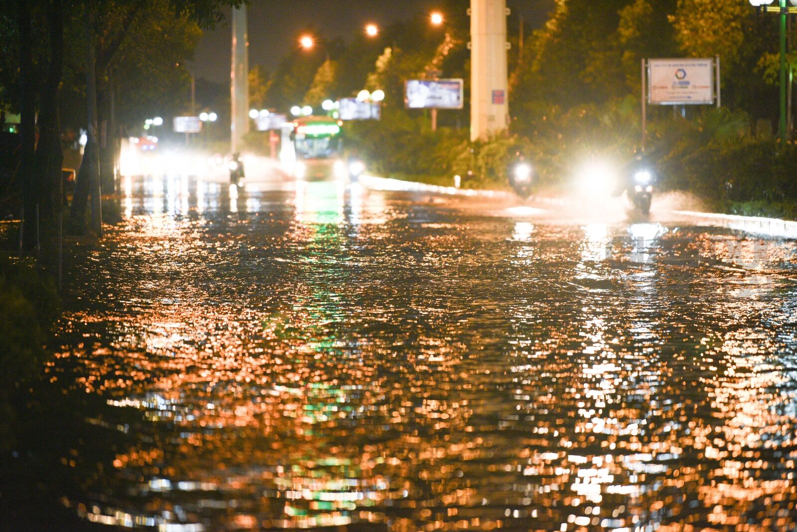 Tại tuyến đường Tố Hữu cả 2 chiều đều có hiện tượng ngập úng.