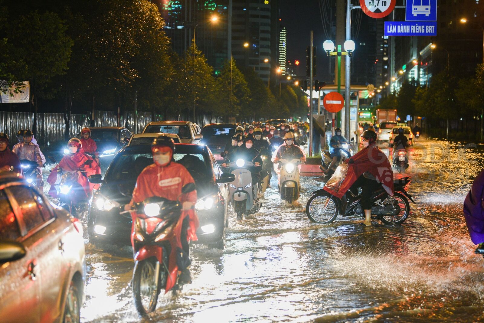 Nước ngập rất sâu trên tuyến đường Nguyễn Trãi (đoạn cổng trưởng ĐH KHXH&NV).