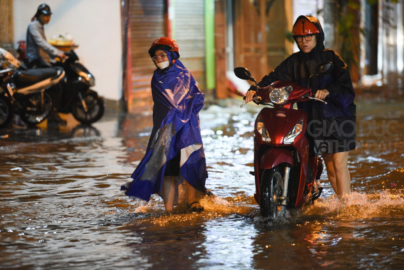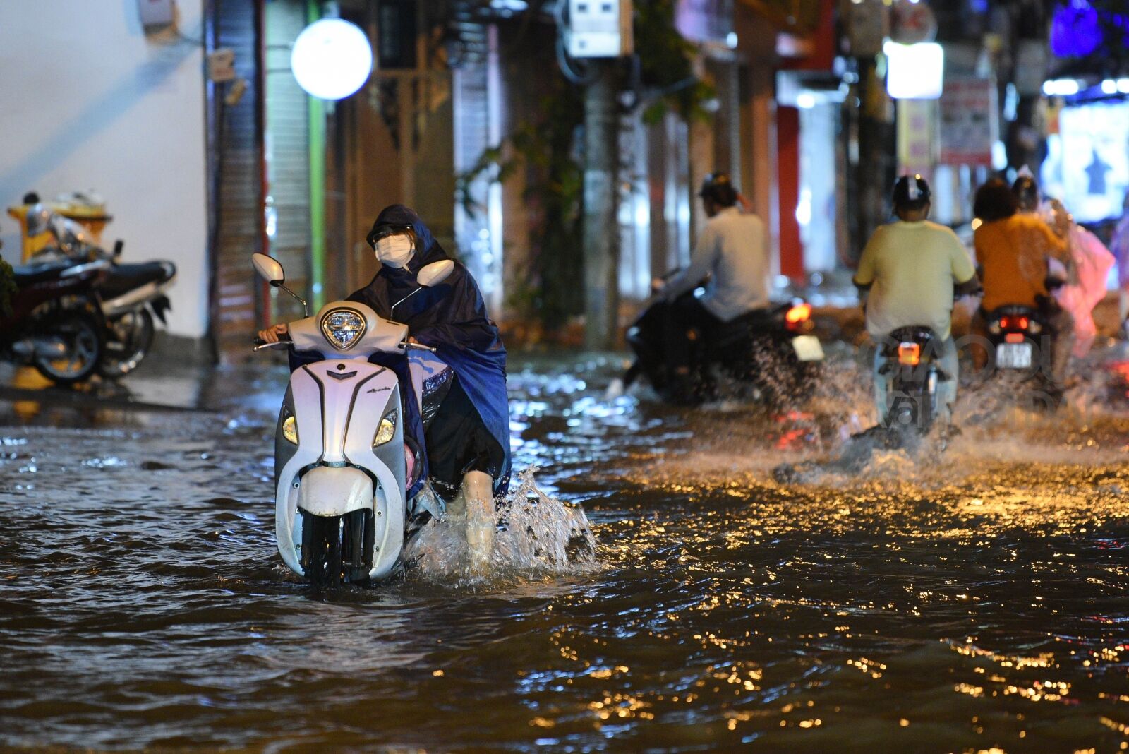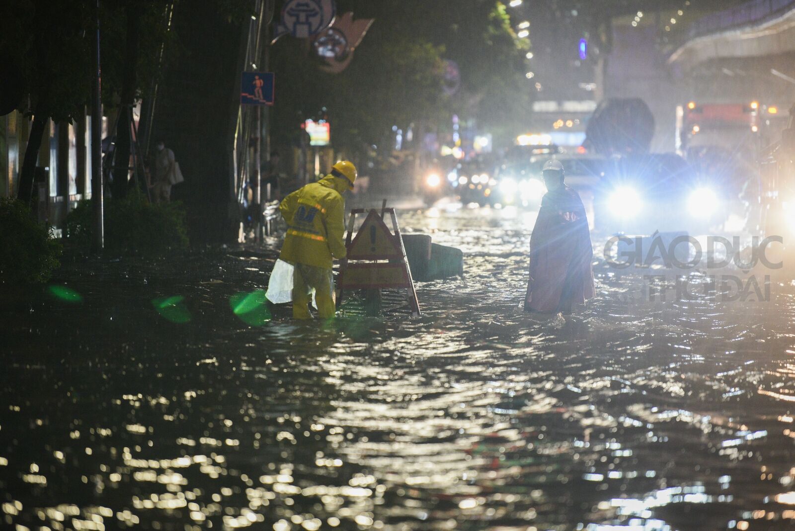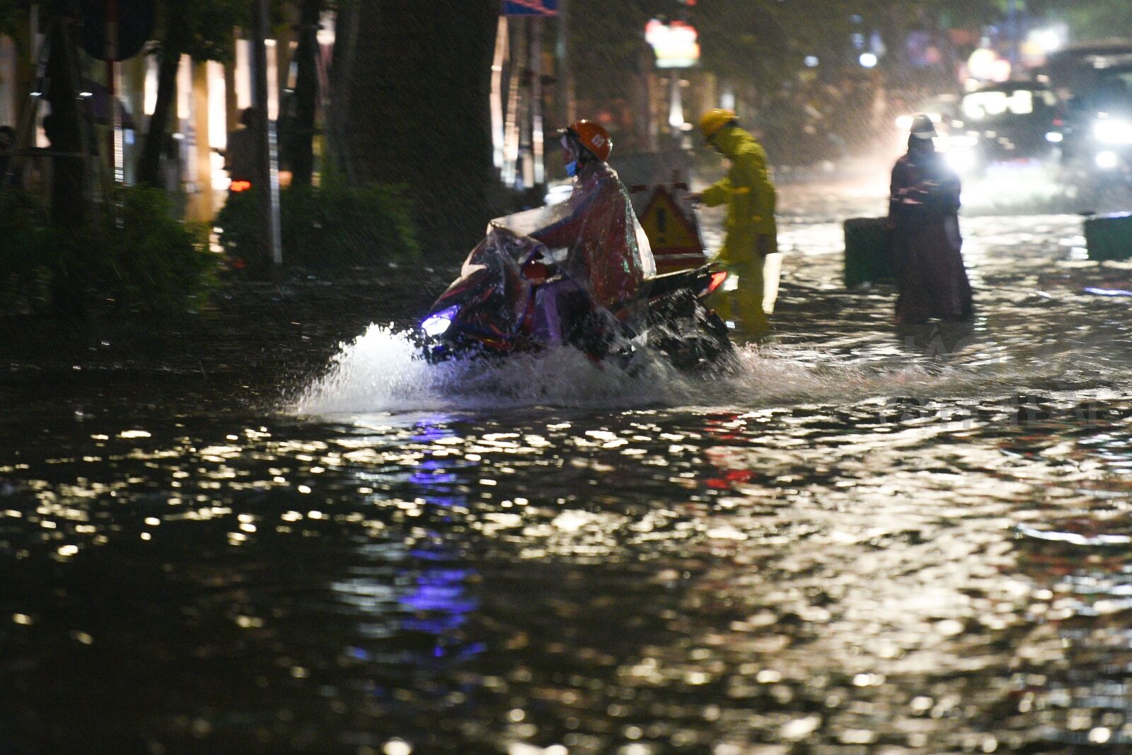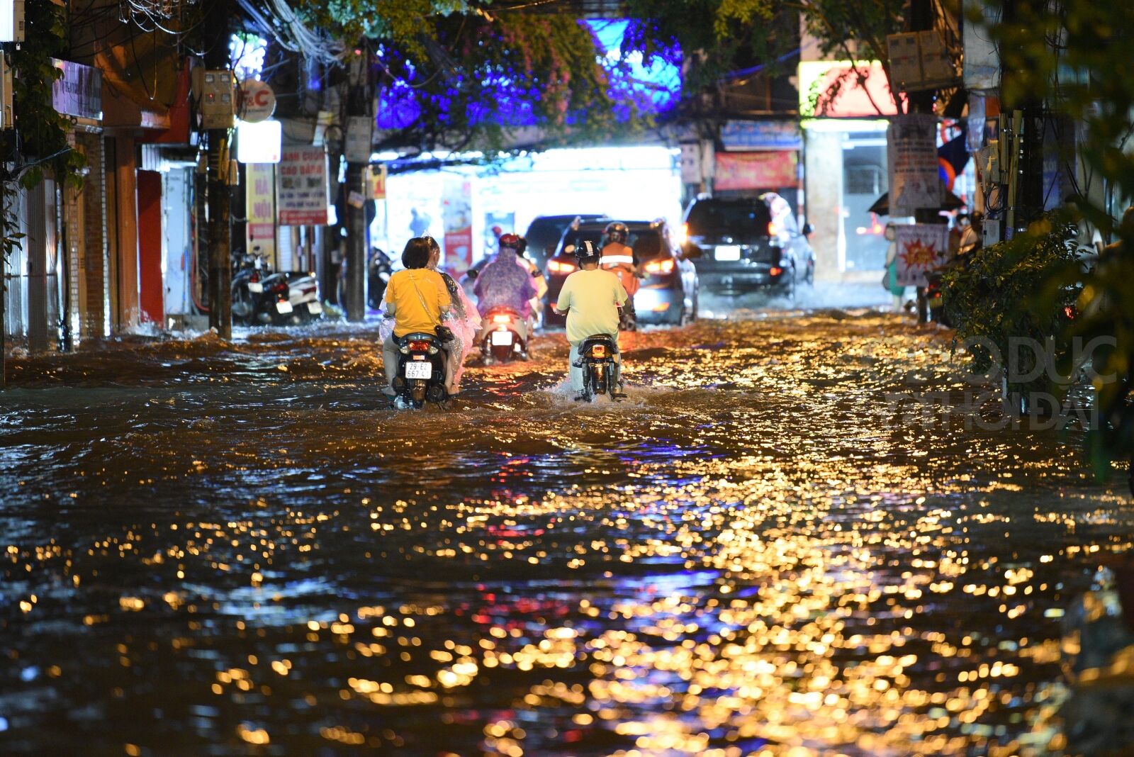 Theo ghi nhận của PV tại Thành phố Hà Nội tối ngày 13/6, một số tuyến phố còn ngập sâu khoảng 30 - 60cm như 'sông' khiến các phương tiện di chuyển khó khăn.