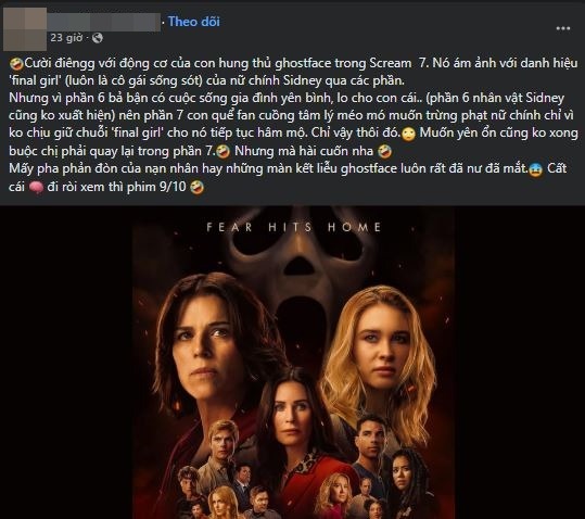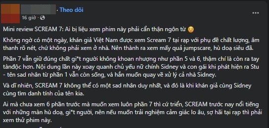 Một khán giả đồng tình rằng “Phần 7 vẫn giữ đúng chất giết người không khoan nhượng, thậm chí là còn ra tay tàn độc hơn”. Ngoài ra, danh tính của Ghostface lần này cũng vô cùng khó đoán, là điểm nhấn lôi cuốn người xem.